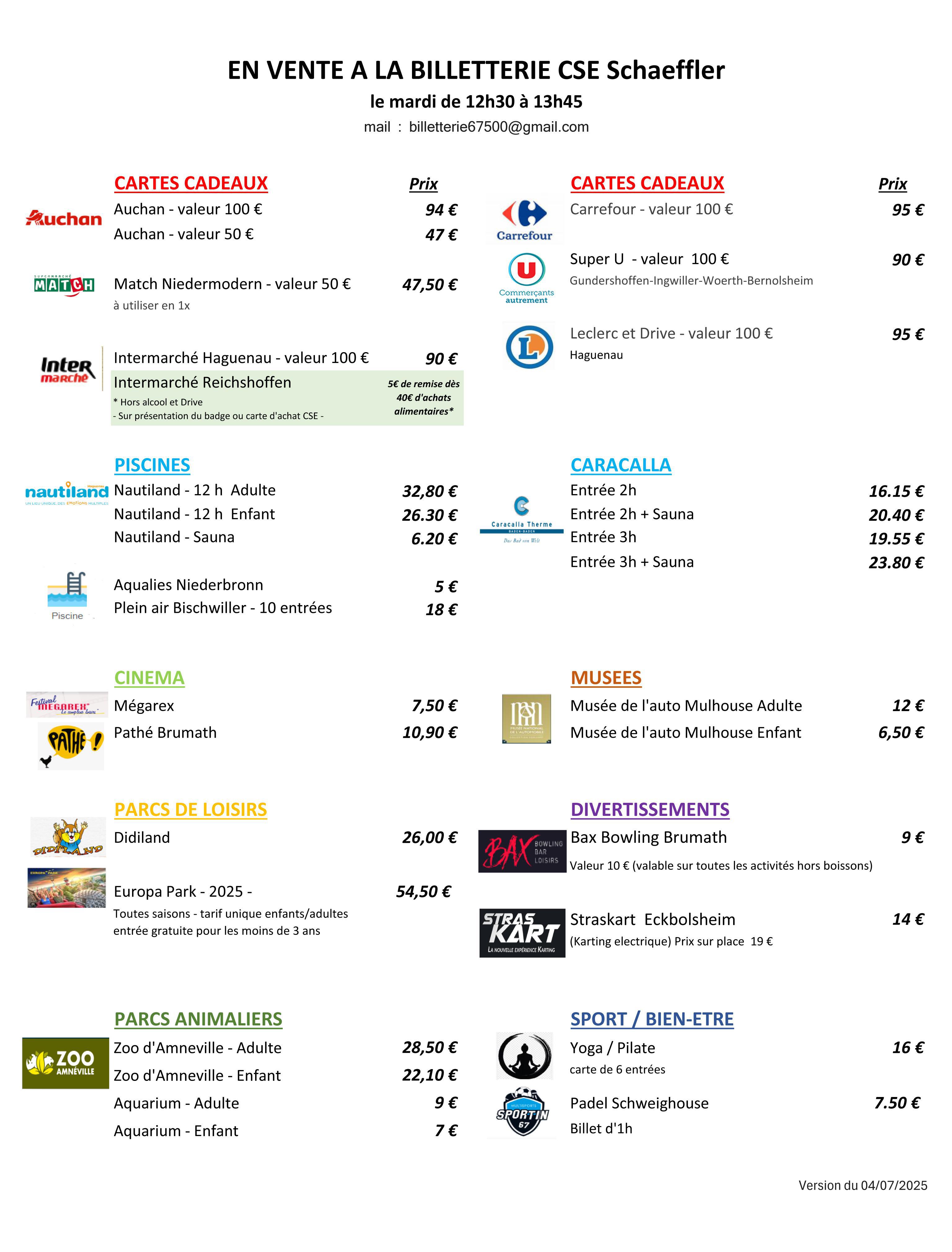 Infos, horaires et tarifs billetterie